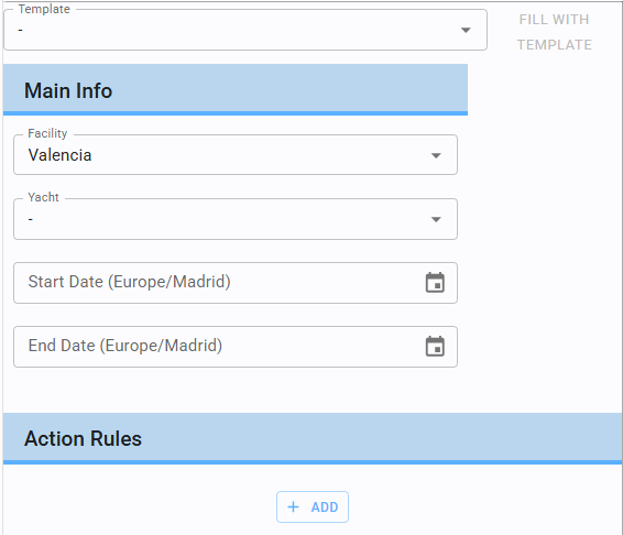 To create a new request, enter the Boat, Facility, Start Date, and End Date.