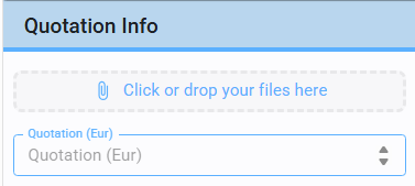 To create an offer, enter the Quotation amount and attach the relevant file (refer to Upload files). Note that the quotation amount is fixed once saved.