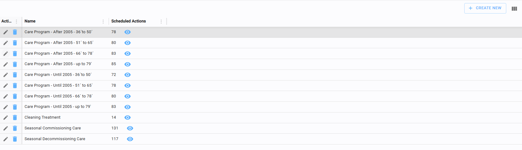 While frequencies may vary, they are typically structured on an annual basis. Click the eye icon to view the specific tasks included in each plan.