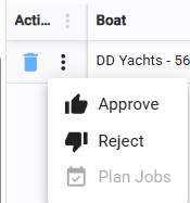Once an offer is saved, use the three vertical dots in the Action column to Approve or Reject the proposal.