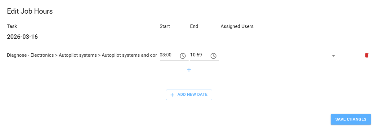 Right-clicking on a Job allows you to select "Edit Hours." Within this editor, you can add tasks on the same day using the + icon or add tasks for