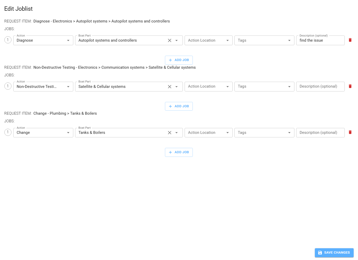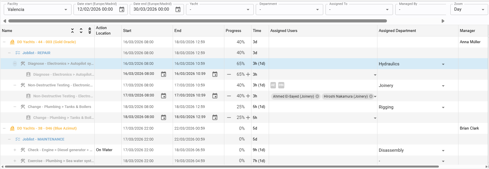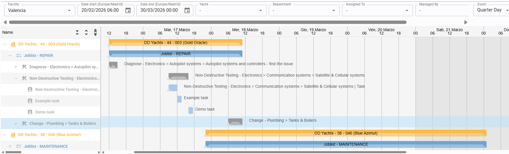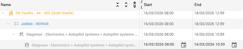 Dates must be set at the Task level; the dates for Jobs, Joblists, and Boats are automatically calculated based on their underlying tasks.