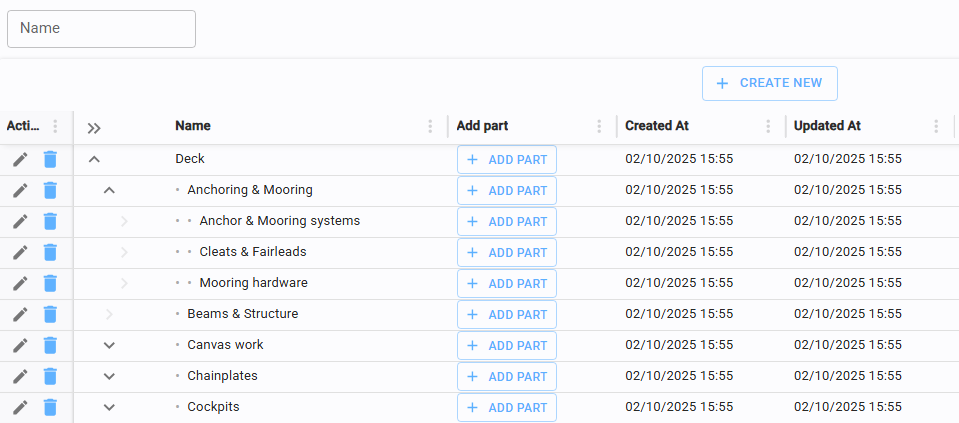 Boat parts are organized within a three-level hierarchy for precise identification.