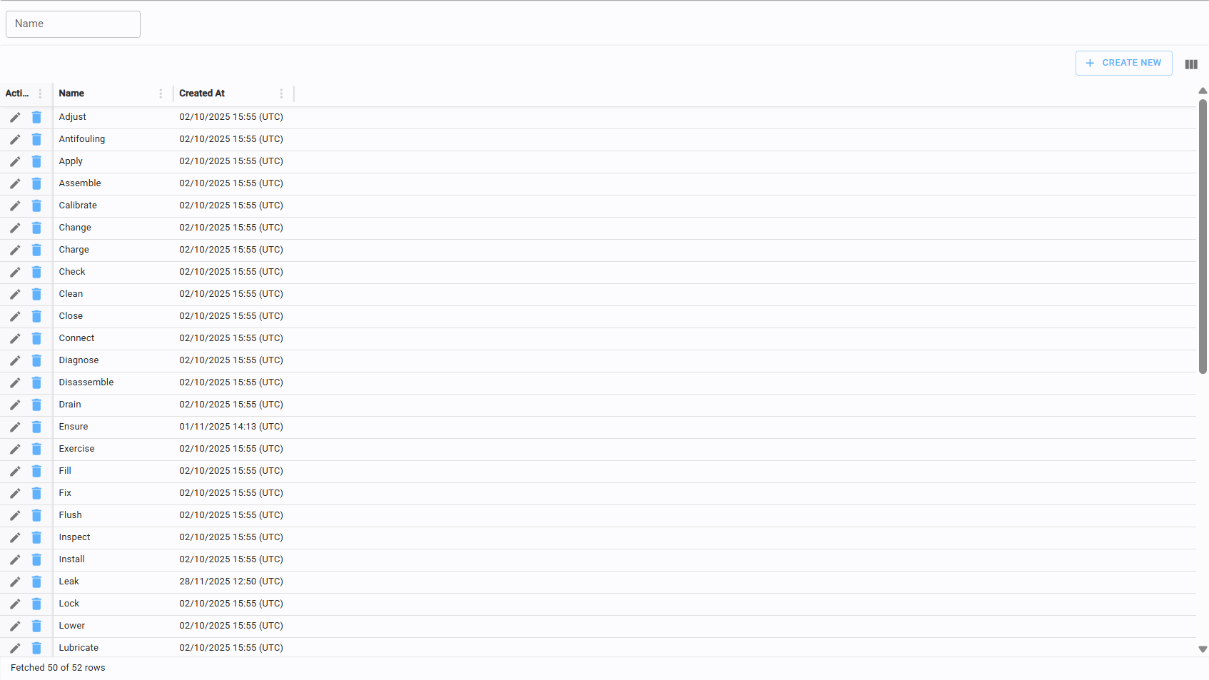 This page allows you to view, create, and delete the possible actions that can be assigned to a job or a yacht.
