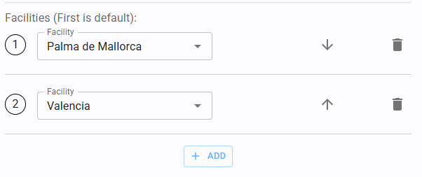 You may assign a user to one or multiple Facilities. The first facility in the list is set as the default (or primary). You can reorder the list using the arrows to change the default priority.