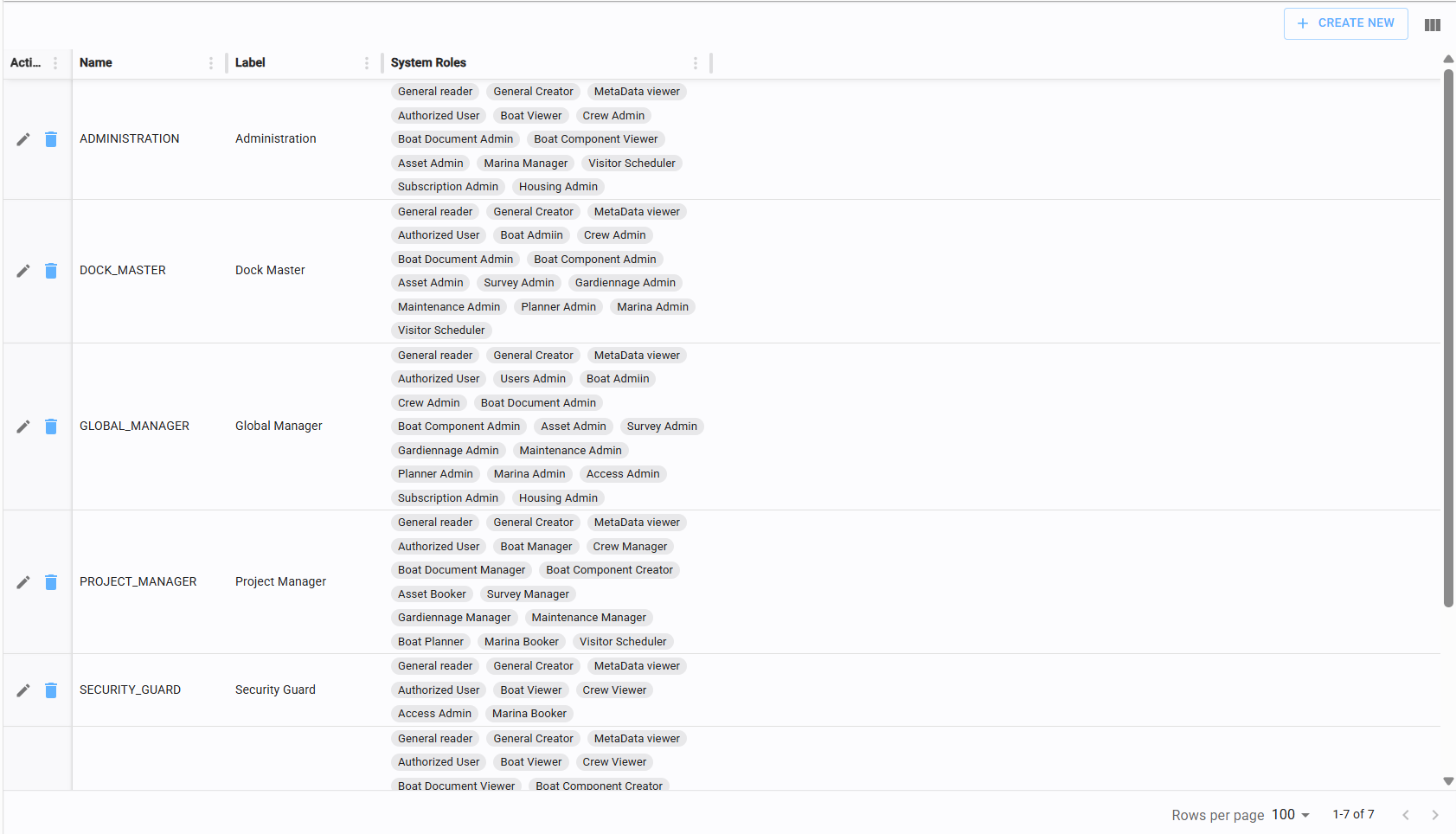 Each Company Role is built by grouping System Roles. A System role represents a predefined set of permissions that is coupled with some system functionality, for example a "Boat Admin" system role grants full rights over the Yacht section.