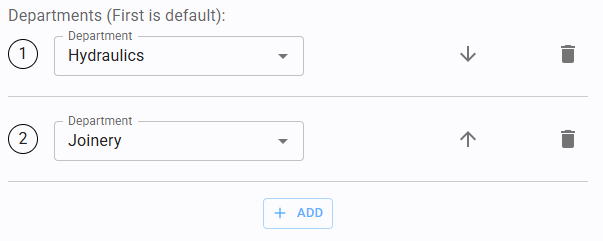 Users can be assigned to one or more Departments. The first department in the list acts as the user's primary/default department. Use the arrows to reorder this list as needed.