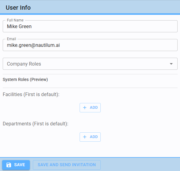 Note: A user without at least one assigned Company Role will have no access to application features.